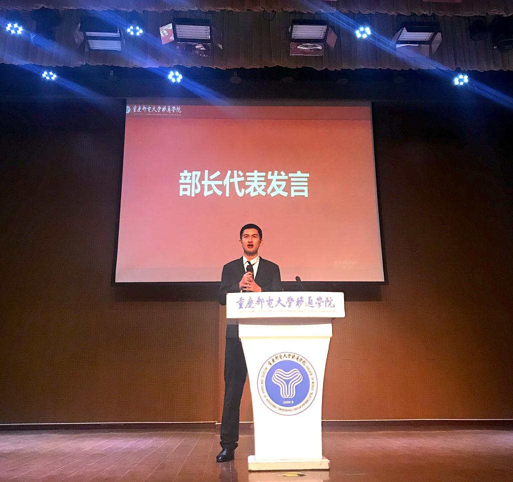 颁奖结束后,苏述庚主任走上台前发言,他表达了对学生团队工作的肯定和感谢,以及对接下来一年工作的期望和要求,我们也会谨记苏主任对我们的期望,不忘初心,砥砺前行,让部门的工作更上一层楼,让自己的大学更加完美,无憾无悔。所有的选择都是因为喜爱,既然选择了名师课堂志愿者协会,那就只顾风雨兼程,一往无前吧。干事代表闫招洁同学在台上用耿直爽快的语言和大家讲述了自己进入学校、选择名师课堂志愿者协会的有趣经历。从她身上我们可以看到,刚加入名师课堂志愿者协会的大一新干事们的活力与热情和为名师课堂志愿者协会努力奋斗的决心。而部长代表胡代民同学也对他之后的工作提出要求,同时给“小萌新”们指引了方向,他一直坚信:态度比能力更重要。“越努力,越幸运。”这不仅是会长代表吴佳斐同学对我们的寄语,也是她工作两年在实践中总结出来的经验。