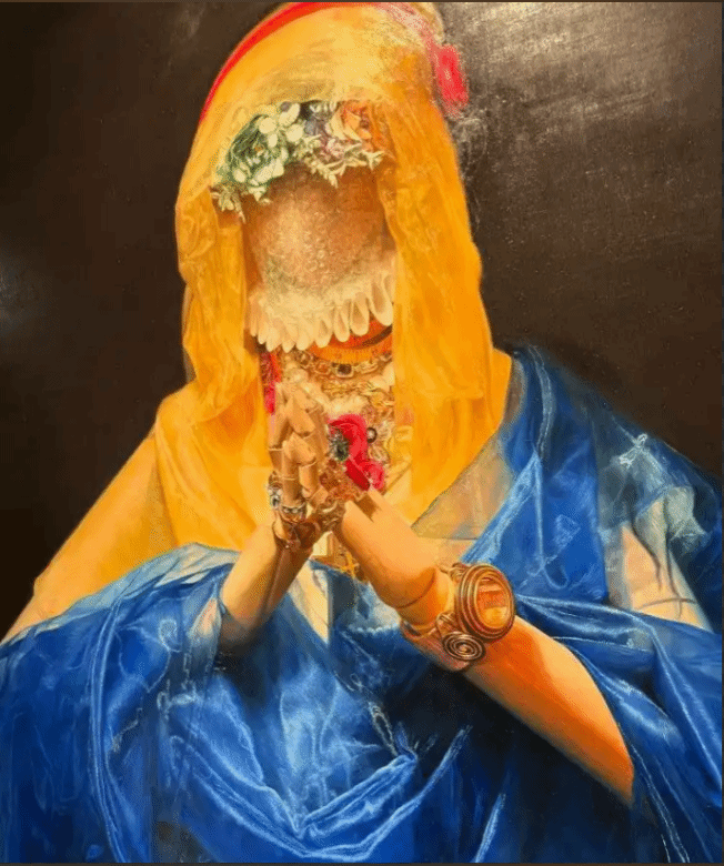 夜晚的綦艺大剧院座无虚席,葛教授以一问破题:“艺术法,是保护艺术家,还是规范市场?”。他以川美毕业生作品“重庆人自己的《蒙娜丽莎》”——超写实画作《祷》的网络传播为例,剖析其中潜藏的著作权争议与市场估值机制,精准捕捉艺术表达、公众传播与法律边界之间的张力。法律,在这里不再是冷冰冰的条文,而是艺术生态中的润滑剂与守门人。