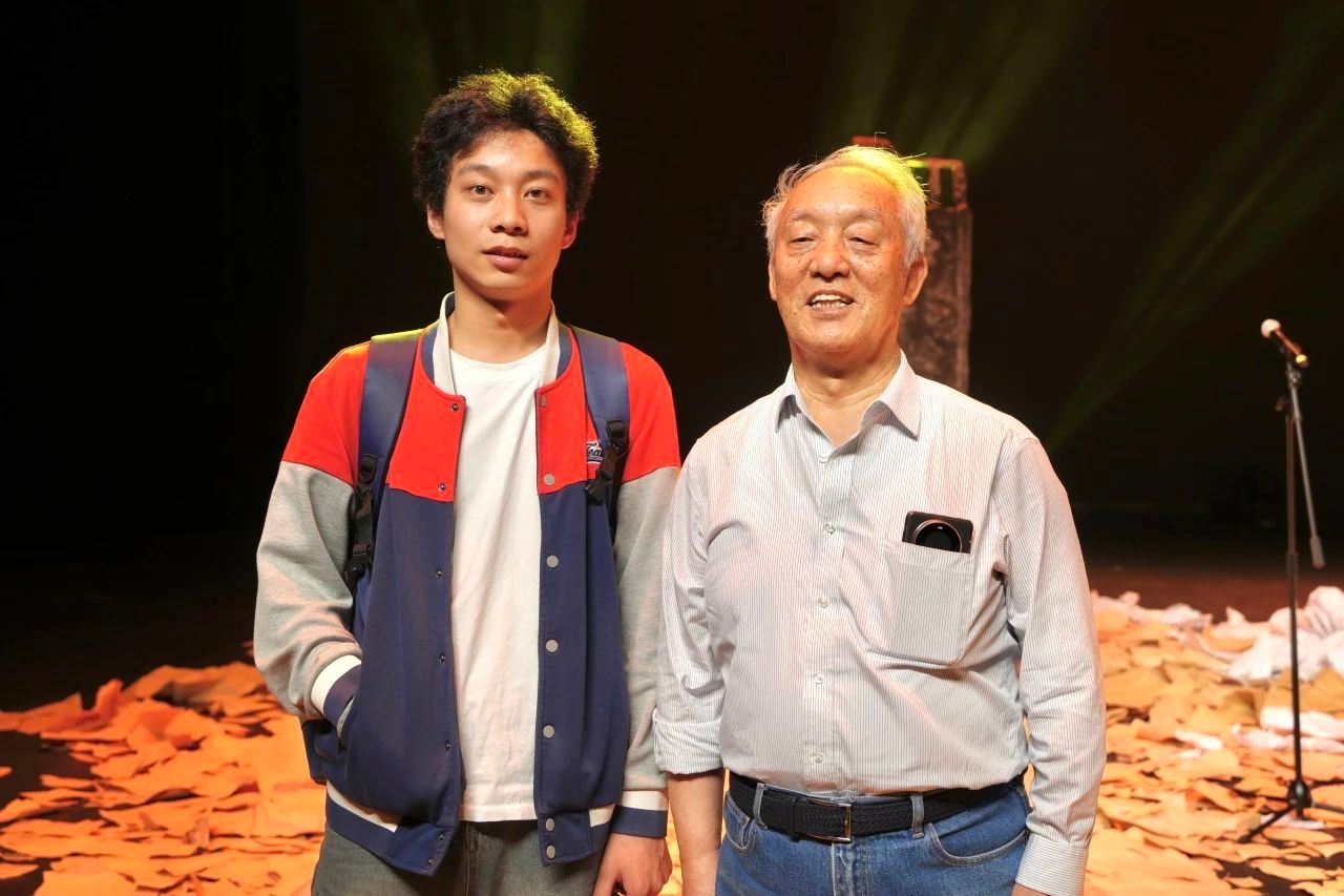 (宗帅营同学与李德顺教授在观看独幕话剧《面向自我的陈述》后合影)