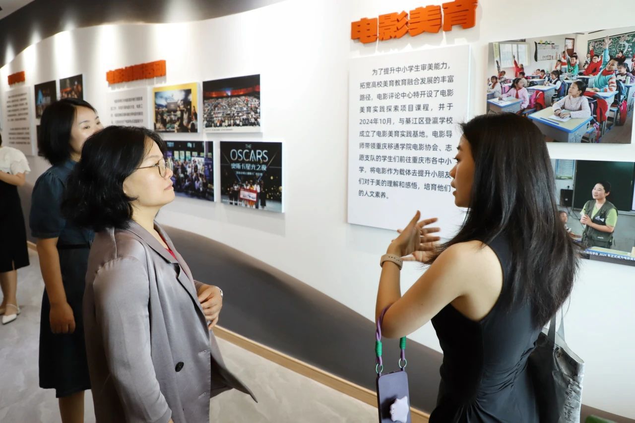 来校期间,林小英在重庆移通学院常务副校长王永周,校长助理谢银平的陪同下,参观了綦江校区双体软件精英产业学院、观云书院、非物质文化遗产馆、万画影城巨幕厅、电影评论中心、游泳池、公共大数据安全技术重点实验室、綦河书院。“看到学校办学模式理念的内容,我才发现,已经很久没有看到这么一个用心办学的学校。”在深入了解重庆移通学院后,林小英教授肯定了学校独特的办学理念,并夸赞书院为学生提供了温暖的生活环境——书院就像醇厚的坛水,学生浸润其中自然滋养出独特品格。重庆移通学院将“家文化”搬进学校,校园不仅是知识传授的场所,更是通过场景革命打造的成长生态圈。当教育空间打破功能边界,学习便成为无处不在的生命体验。