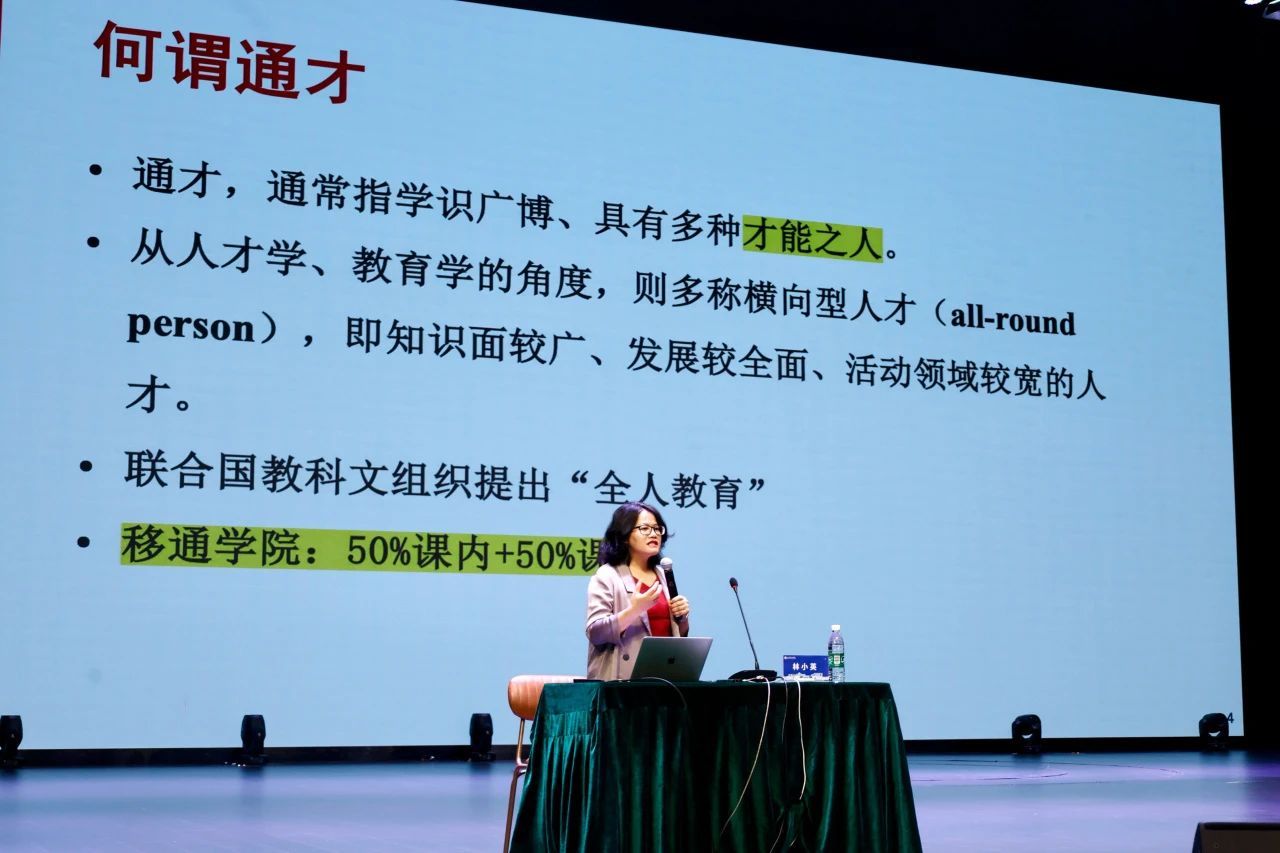 林小英用自己的大学经历为引,讲述自己的跨界成长。“什么叫作通识?其实是大家一起做一件有意义和价值的事,移通学院50%的课内加50%的课外,是在培养将来最重要的职业转换能力。”当专业教育锚定生存技能,通识教育便成为照亮生命旷野的星光。