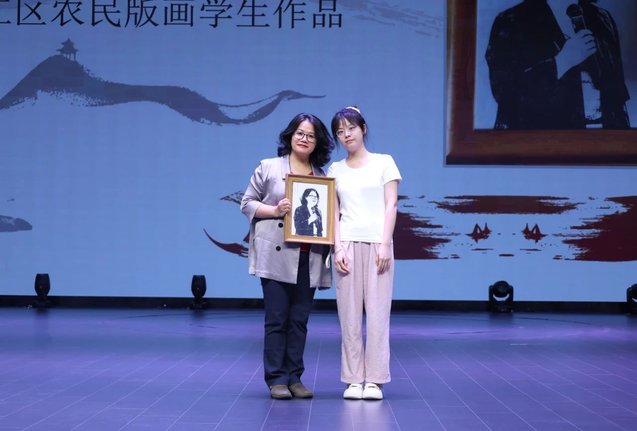 讲座尾声,学校綦江非物质文化遗产馆学生还为林小英送上了专属刻制的非遗版画。