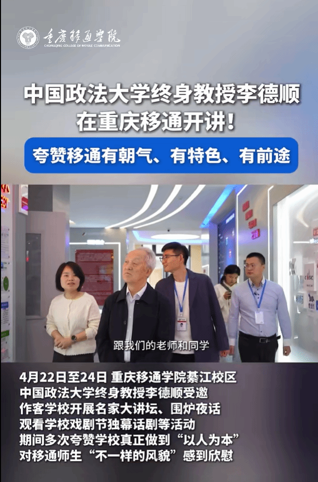 李德顺教授在深入了解重庆移通学院后,毫不吝啬地给予高度评价。漫步校园,看到风清气正、朝气蓬勃的校园氛围与师生风貌,他欣慰地表示,在这里看到了 “不一样的教育” 为师生人生价值带来的正向反馈。