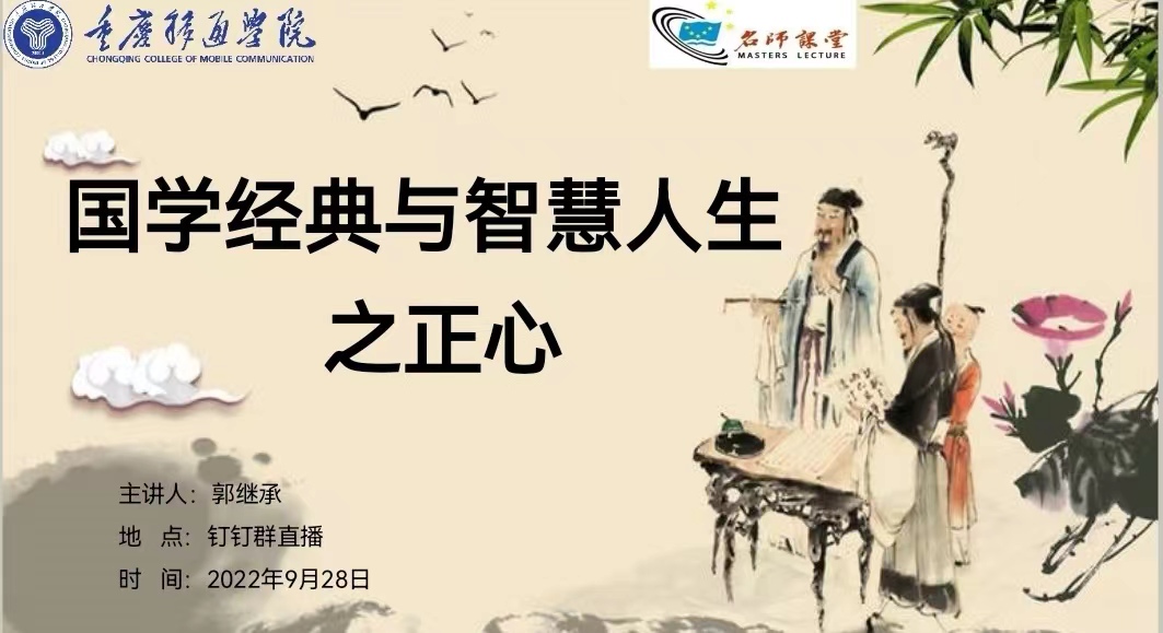 浩瀚五千年,中国传统文化博大精深。国学作为中华文明的重要载体,其经典著作凝聚着中华文化之精髓,其思想智慧成为了传之千古的结晶。国学不仅是中国悠久传统文化的证明,也是每个中国人的立身处世之本,更是我们不可或缺的精神力量。9月28日下午4点30分,文化移通开展线上研讨会,郭继承教授带来关于《国学经典与智慧人生之正心》的讲座,为同学们讲解国学经典,鼓励师生学会用国学经典引领人生。
