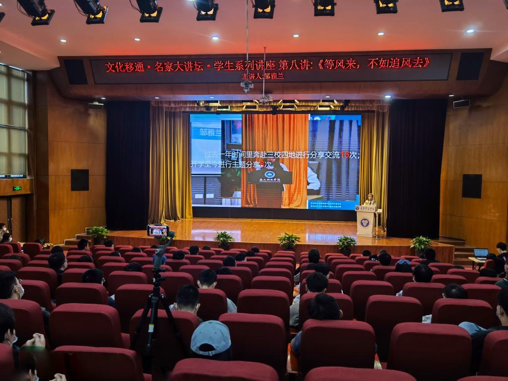 等风来,不如追风去,追逐的过程就是享受人生的意义,但如何去肆意追逐梦想?又如何轻松持续的做到持续追逐?11月3日下午16:00,在下里巴人剧场,2019级艺术传媒学院广播电视编导专业学生邹雅兰作为“我是名师”第八讲分享人与大家分享追逐梦想的挫折与成功。分享开始,邹雅兰同学就向所有人抛出一个有趣的问题:《甄嬛传》这部脍炙人口的电视剧,在剧中主角甄嬛的身上是怎样体现出“等风来不如追风去”这句话含义呢?