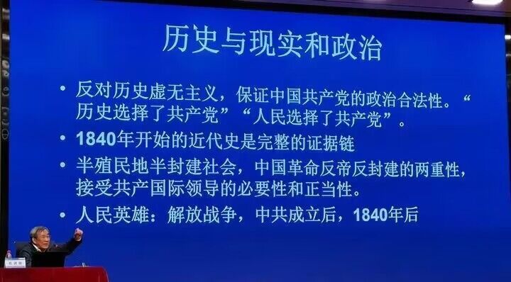 以史为鉴,最大的作用在于从历史中得到教训。得到我们该怎么去做的方法,学者没有学界,但是学者有祖国,我们要反对历史虚无主义,因为是历史选择了中国共产党,人民选择了中国共产党。