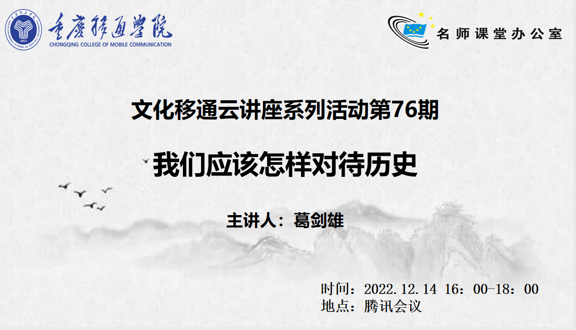 唐太宗李世民说过:“夫以铜为镜,可以正衣冠;以史为镜,可以知兴替;以人为镜,可以明得失。”了解历史,可以让我们深刻了解世界上的无数道理。 12月14日下午4点,文化移通线上研讨课带来了葛剑雄教授的《我们应该怎样对待历史》讲座,带领同学们一同倾听那被岁月洗礼的历史故事。