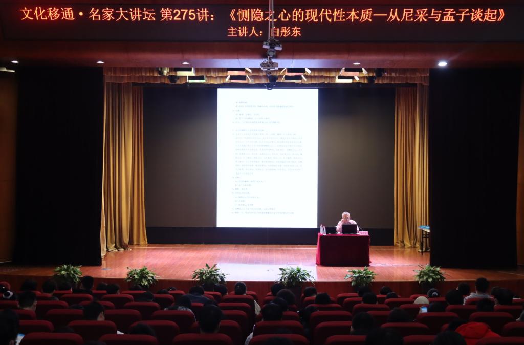 讲座开始,白彤东教授从“尼采与孟子”两位哲学家的思想开始向同学们谈起。介绍了在尼采心中所理解的“同情心”,怜悯作为现代病症:是“‘不自我中心的’价值、怜悯的直觉、自我否定、自我牺牲,”是“人类之重大危险”。“怜悯的道德”,是“欧洲文化的最险恶的症状”;是一种“可耻的现代的情感软弱”。白彤东教授认为,它实际上是一个新的东西。直到今日,哲学家们都曾一致同意怜悯是无价值的,对于柏拉图、斯宾诺莎、拉罗什富科和康德四位有着明显不同哲学思想的哲学家,在这一点上也是统一的,他们对“怜悯”是看低和轻视的。因为在西方古希腊、古罗马时代,怜悯并不被重视,在欧洲现代才逐渐的被重视起来。对于此种变化,尼采用“主人与奴隶”的道德与反叛的思想来解释。但这种思想却无法说明“恻隐之心”会成为孟子思想的道德之根本,并成为中国传统文化的主流的一部分。白彤东教授指出,如果将“周秦之变”看作是与欧洲相同的一种现代化过程,那么中国的先秦哲学就等同于一种现代哲学。
