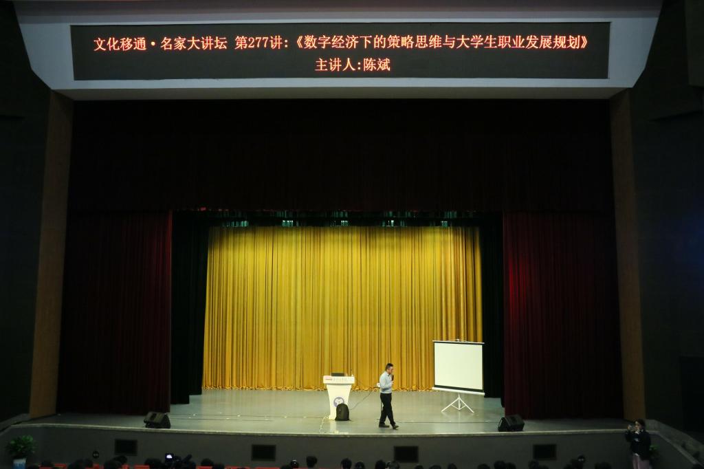 随着数字经济的高速发展,新的商业模式也随之兴起,线上店铺、线上教育、在线问诊、远程办公等都成为了人们解决就业问题的新途径。新的业态和商业模式带动了市场的快速增长,创造了许多新的就业机会。而作为大学生怎样才能有所作为?3月21日晚19点,华中科技大学陈斌教授在合川校区缤果大剧院为同学们开展《在数字经济下的策略思维与大学生职业发展规划》的讲座。