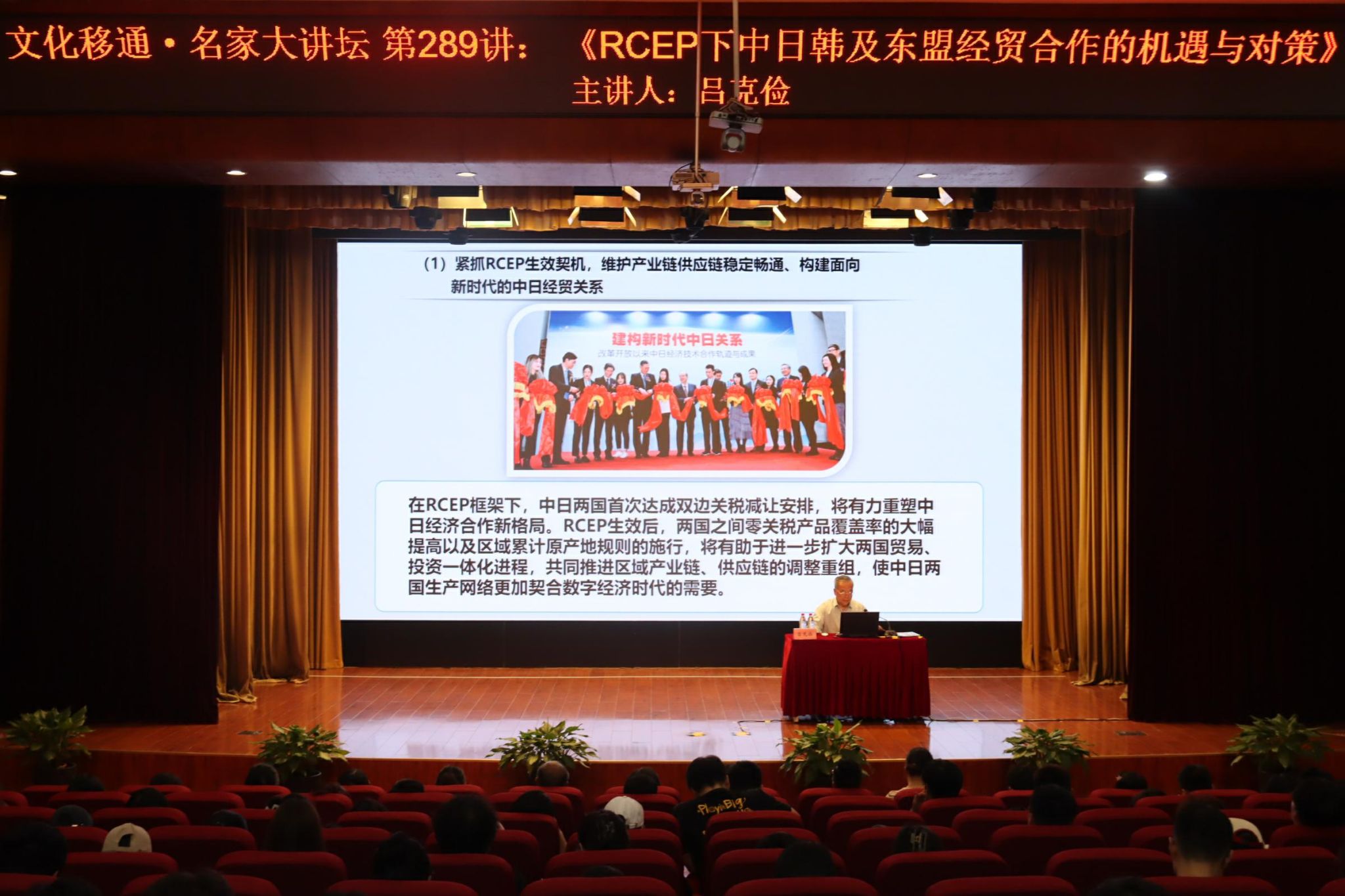 RCEP是全球涵盖人口最多、最具有潜力的自贸区谈判。协议一旦达成,将进一步促进地区产业和价值链的融合,为区域经济一体化注入强劲动力。5月16日晚上19:00,全国日本经济学会副会长、商务部亚洲司原司长吕克俭先生在下里巴人剧场带来了主题为《RCEP下中日韩及东盟经贸合作的机遇与对策》的讲座,带领同学们一起探讨RCEP的生效对中国经贸合作的影响。