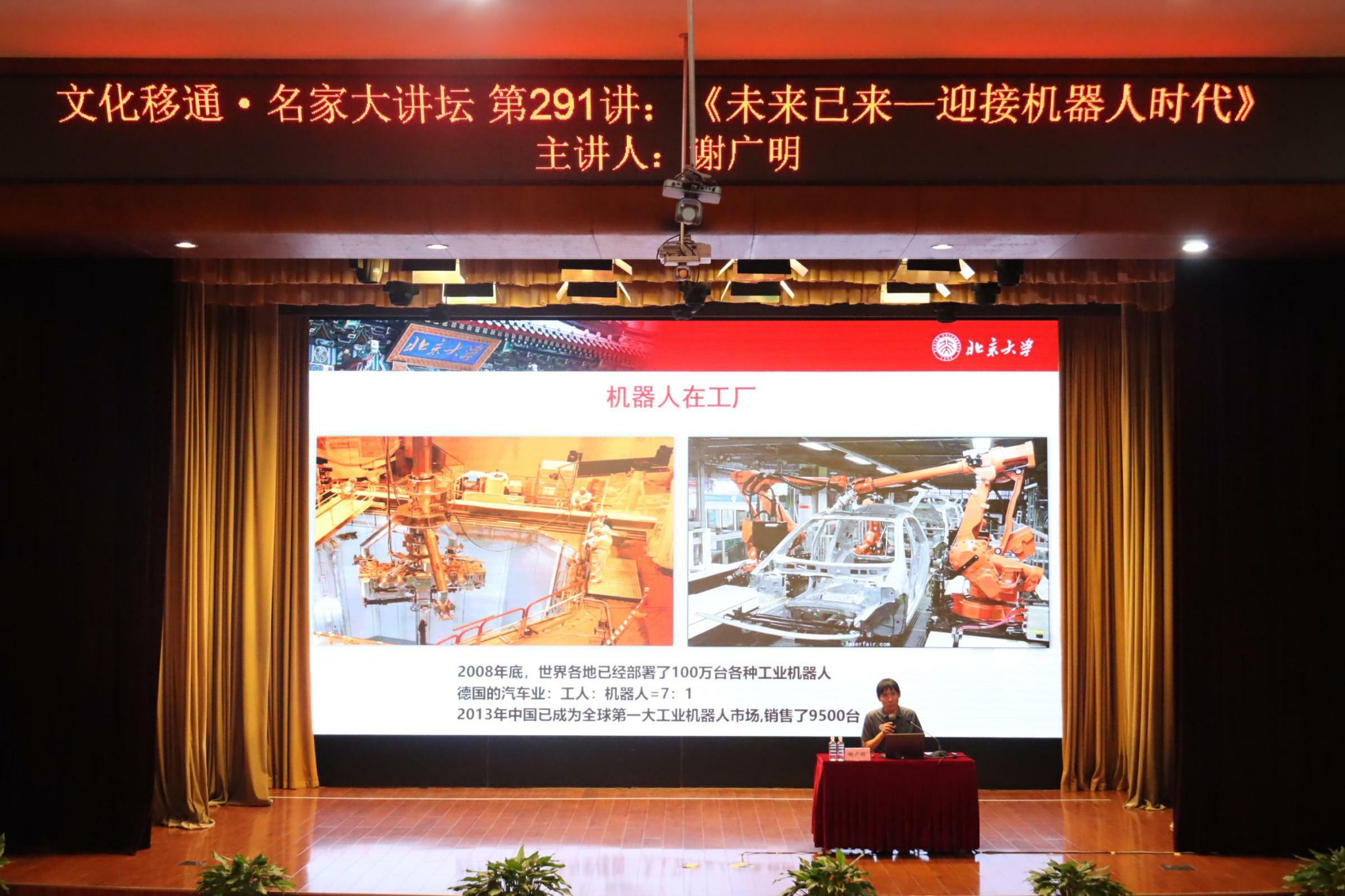 谈到机器人,我们可能会想到《机器人总动员》中瓦力和伊娃,或者想到《超能陆战队》中可爱憨厚的大白,这些都是动漫或者科幻电影里的角色,但有没有思考过机器人会和现实生活中的人一模一样?5月18号晚上七点,北京大学工学院谢广明教授在下里巴人剧场为同学们带来了主题为《未来已来——迎接机器人时代》的讲座,带领同学们一同了解机器人的发展并畅想机器人发展未来。