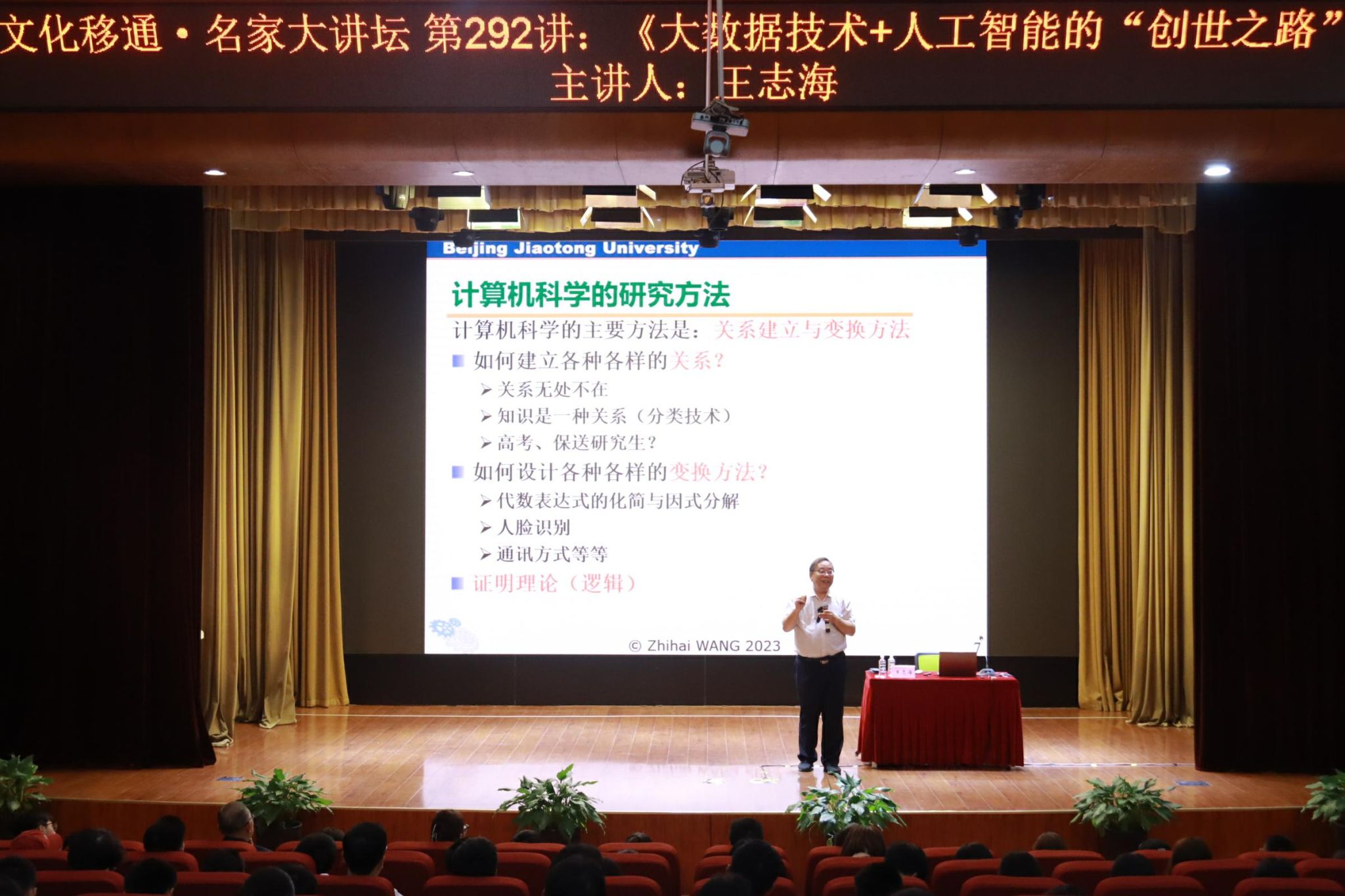 什么是数据?哪些是属于大数据技术?你是否对此感到疑惑呢?是否想进一步了解大数据技术的现实应用呢?5月23日晚上7点,北京交通大学计算机与信息技术学院王志海教授在下里巴人剧场为同学们带来主题为《大数据技术+人工智能的“创世之路”》的讲座,与同学们一起探讨生活中人工智能与大数据技术的应用体现在哪些方面又发挥着怎么样的作用。