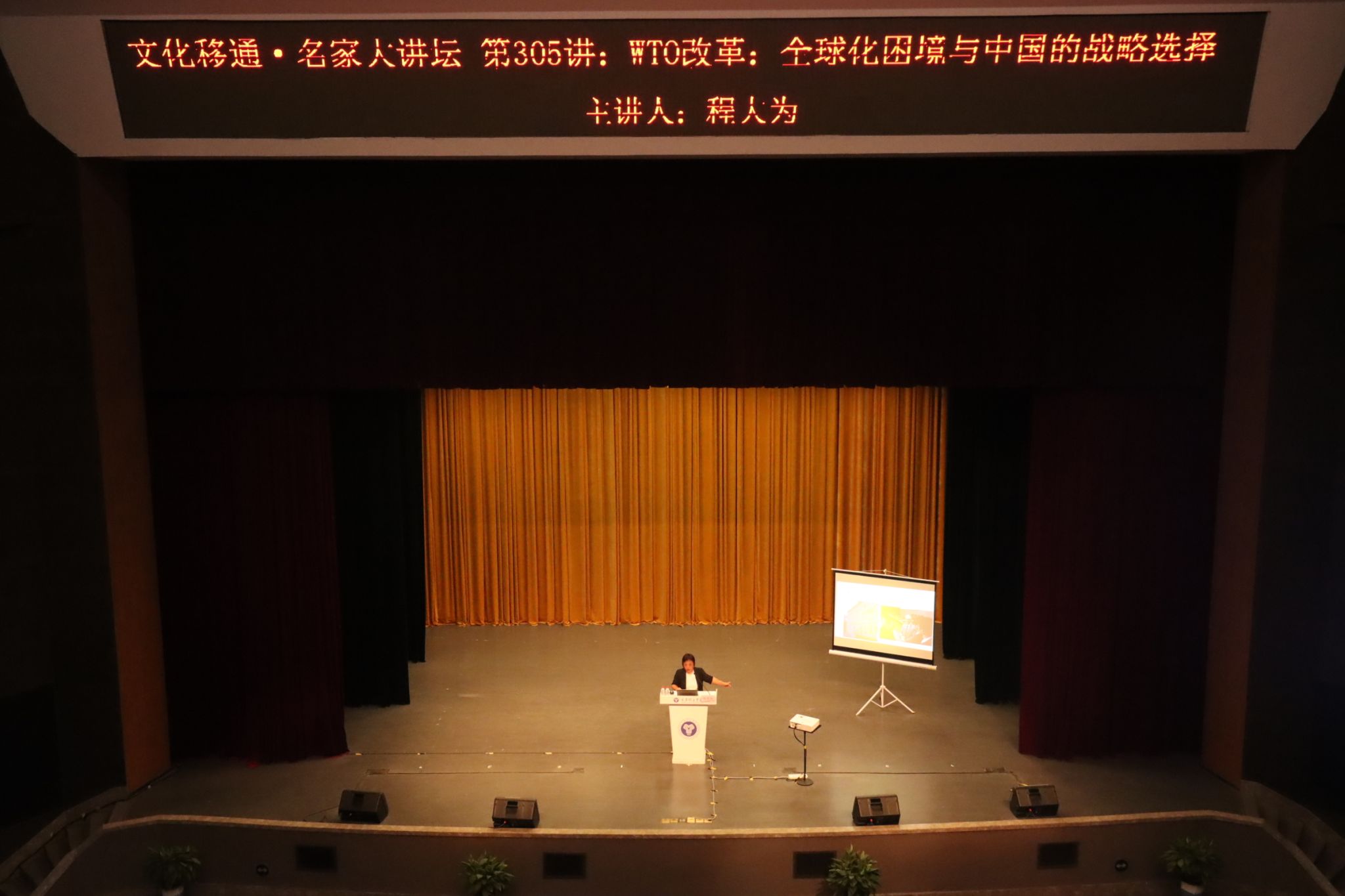 由于WTO的治理危机,当前自由主义国际秩序正面临挑战,导致WTO规则的变化,新时代中国针对此问题,政策上展开了一系列的改革,9月21日19:00,中国人民大学经济学院程大为教授在缤果大剧院为同学们带来了主题为《WTO改革:全球化困境与中国的战略选择》讲座,带领同学们更全面的了解WTO的相关知识,感受中国在贸易上的战略与全球化困境。