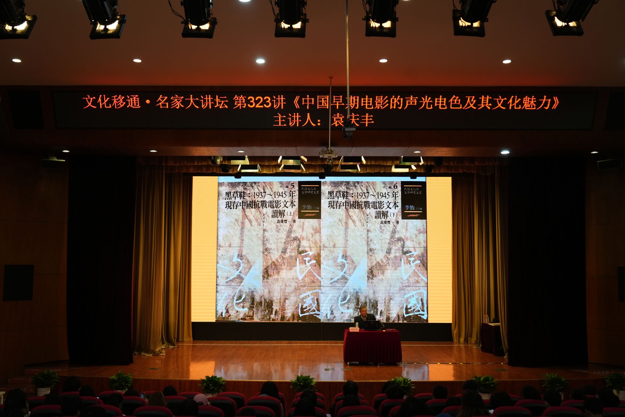 3月18日16:00,中国传媒大学袁庆丰教授做客“文化移通——名家大讲坛”,在下里巴人剧场开展了以《中国早期电影的声光电色及其文化魅力》为题的讲座,袁庆丰教授逐步揭开中国早期电影的神秘面纱,使同学们深入了解那个时代的电影是怎样体现视觉层次和烘托故事氛围的,以此向同学们展现了一种独特的美学观念。