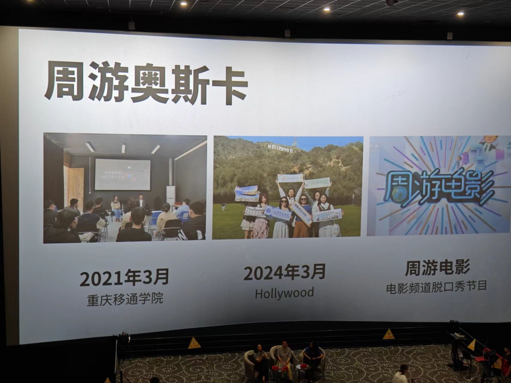 2021级广播电视编导4班的孙恋同学在参加完分享会后谈道:“从前我对于奥斯卡的印象仅仅停留在表面,只知道这是著名的国际电影节,众星云集,影响力大,却未曾了解过其背后的故事和内含的运行机制,但这次聆听了周黎明老师的分享后感觉自己和奥斯卡之间的距离越发近了。”2024年4月15日,著名影评人、舞台剧及影像作品编导周黎明老师与重庆移通学院电影评论中心主任彭可老师、2020级通信与信息工程学院谢丹阳同学共同做客“文化移通——名人分享会”,在万画影城X超幕厅开展了以《周游奥斯卡》为题的分享会,此会还结合了重庆移通学院赴美参访奥斯卡活动的经历,讲述了奥斯卡近年来的变化和其背后的机制。