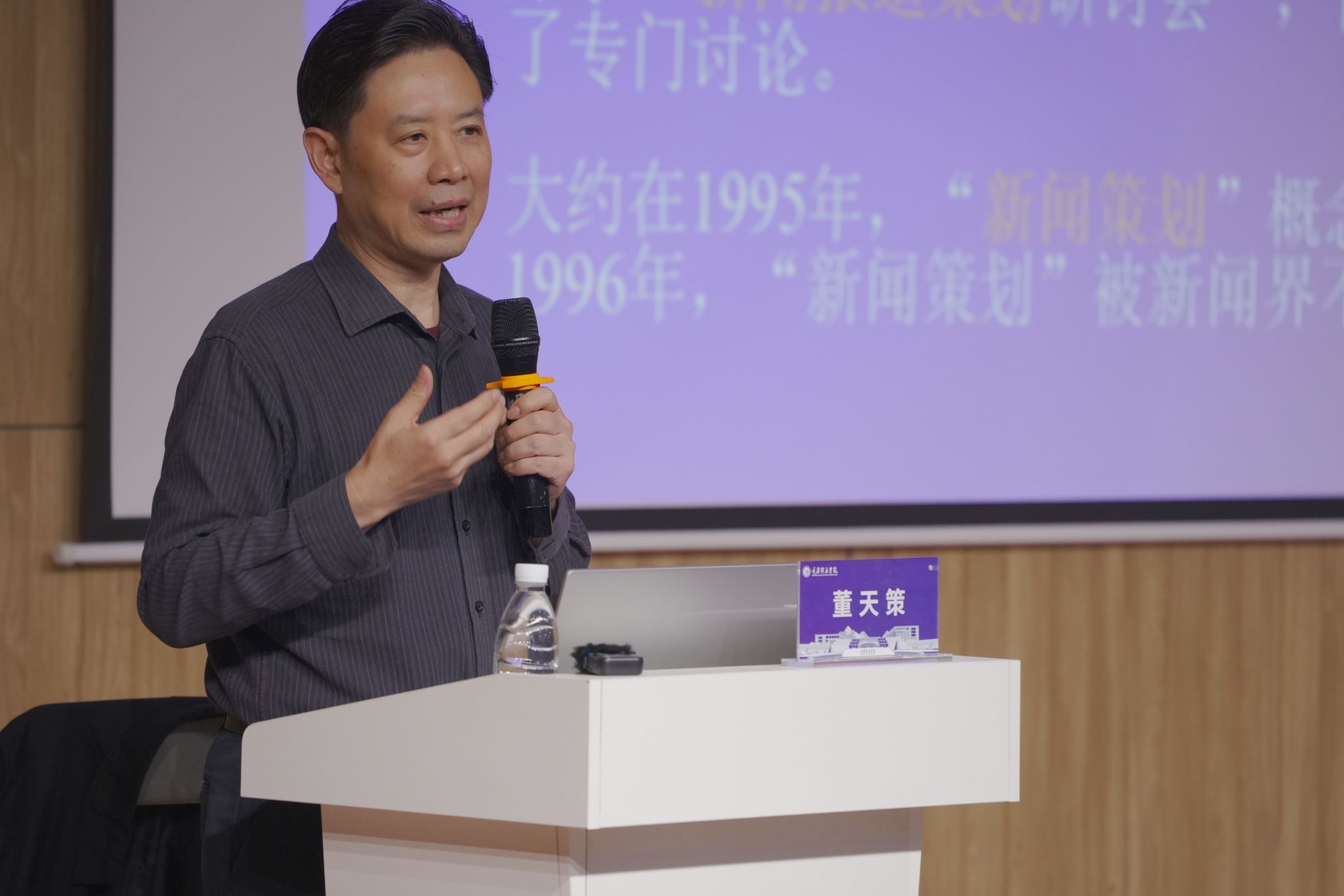 董天策教授从新闻策划概念的提出与演变,到新闻报道策划的价值、工作内涵、操作原则,以及在融媒体时代新闻策划的创新等多个方面,列举了一系列引人入胜的故事,成功吸引了同学们的兴趣,并激发了同学们的思考。