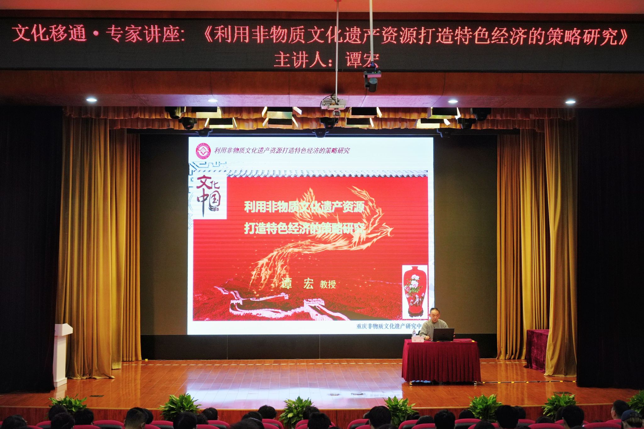 11月6日,谭宏教授应邀做客“文化移通”,在下里巴人剧场开展了题为《利用非物质文化遗产资源打造特色经济的策略研究》的讲座。谭宏教授以其深厚的专业知识,带领同学们深入浅出的探讨非遗文化对于经济的作用。