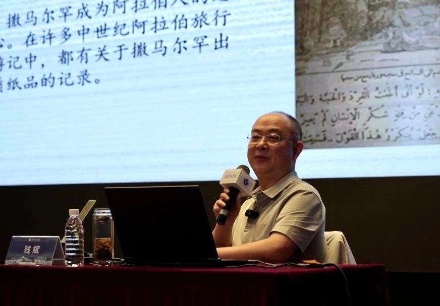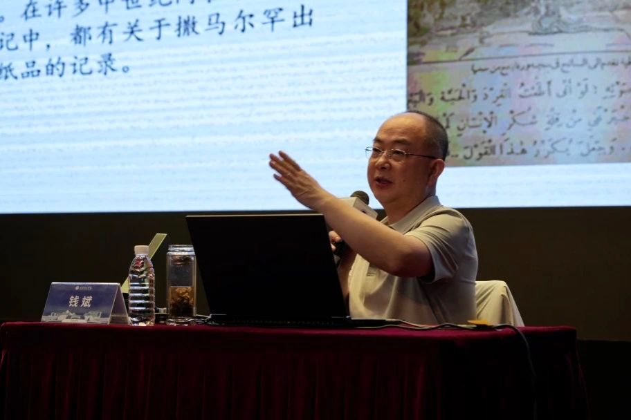 随后,钱斌老师介绍,在纸传入之前,世界各地都在艰难地寻找合适的书写材料。埃及的莎草纸,虽有着独特工艺,却易干裂;两河流域的楔形文字泥板,虽能长久保存,却沉重不便携带;欧洲的蜡板、印度的棕榈树叶、羊皮卷、贝叶经等,各有局限,难以满足知识快速传播与积累的需求。钱斌老师进而阐述了造纸术传播的深远影响。随着丝绸之路的延展,造纸术走出国门、走向世界。在阿拉伯地区,造纸术引发了大翻译运动,众多古代典籍得以翻译保存,为知识的传承与交流搭建起桥梁。在欧洲,纸张逐渐取代羊皮卷,成为书籍的主要载体。书籍数量的增加,又促使印刷术诞生。印刷术同样源于丝绸印染术,从雕版印刷术的经典之作《金刚经》,到沈括《梦溪笔谈》中记载的活字印刷术,印刷术的不断革新,极大地提升了知识传播的速度与范围。
