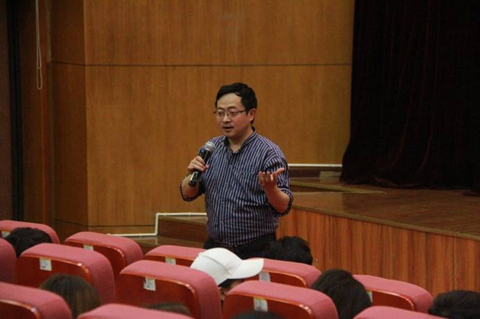 郑老师讲解时经常走到台下为同学们展示具体演讲动作和姿态,示范以歌曲开场的演讲案例时动情地高歌数句,非常生动形象。同学们也被他认真又不乏幽默的讲解深深吸引,现场气氛十分活跃,掌声连连。最后,郑老师以自己一篇演讲的结语作为结尾,再次强调了演讲的魅力。