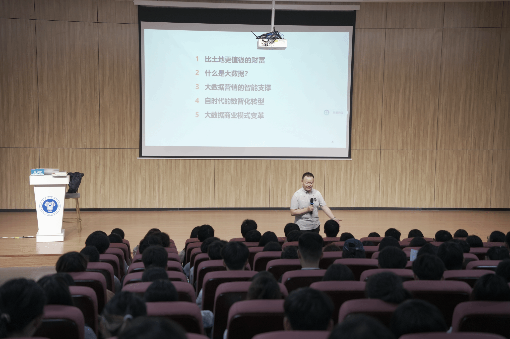 2024年10月14日下午14:00,北京邮电大学教授、诗人、通信和互联网领域营销策划人王立新教授做客我校文化移通——名师课堂,并于贤者楼131多功能报告厅开展了《数智化营销》的系列讲座。王立新教授用通俗易懂的方式,幽默诙谐的语调,带领同学们走进文明的历史,切实感受文明是如何决定一个时代的发展。再以大数据为中心,展示数智化在当今时代的重要性和引导性。