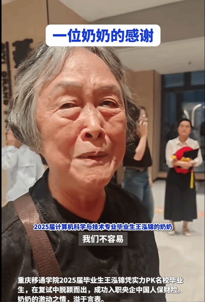 她的孙子,重庆移通学院2025届远景学院计算机科学与技术专业毕业生王泓锦,在中国人保财险激烈招聘竞争中,与众多985、211高校的毕业生同台竞技。据他介绍,参加第二轮复试的18人中有16个研究生,而来自重庆移通学院的本科生他,脱颖而出,逆袭一众985、211,成功摘得录用。