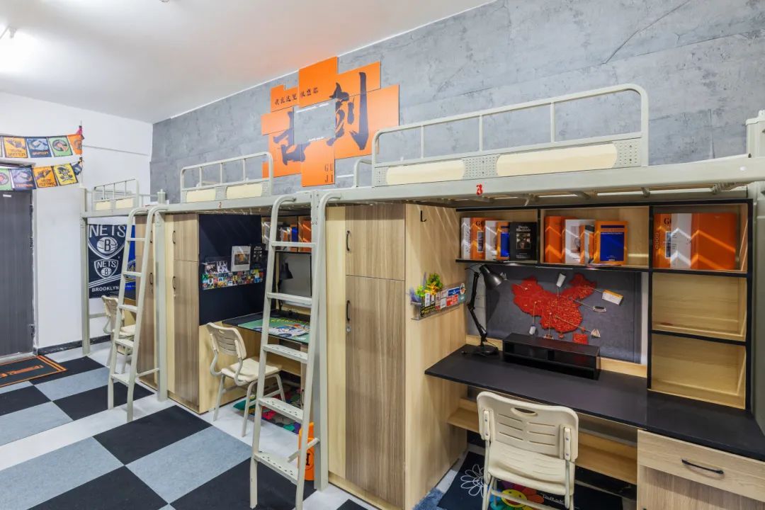 宿舍拥有独立阳台、卫生间、精装木地板,配备智能热水系统、空调、洗衣机、洗鞋机、烘干机、上床下桌独立学习与休息空间。除此之外,每个书院还配有自习室、健身房、咖啡厅……样样俱全。