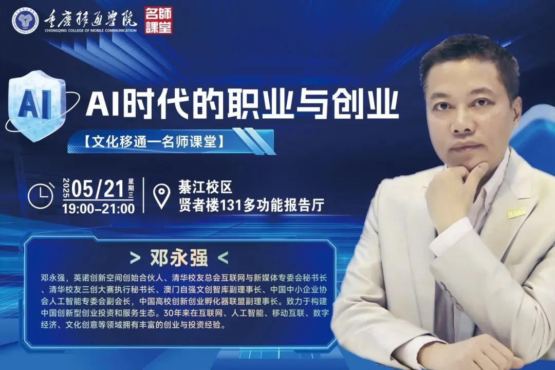 【讲座预告】名师课堂|邓永强《AI时代的职业与创业》