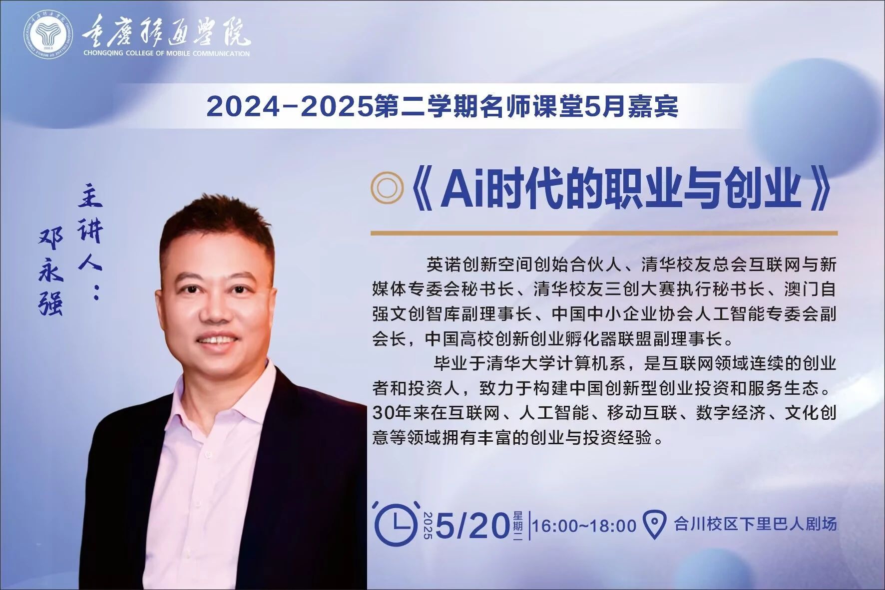 【讲座预告(合)】名师课堂 | 邓永强《Ai时代的职业与创业》