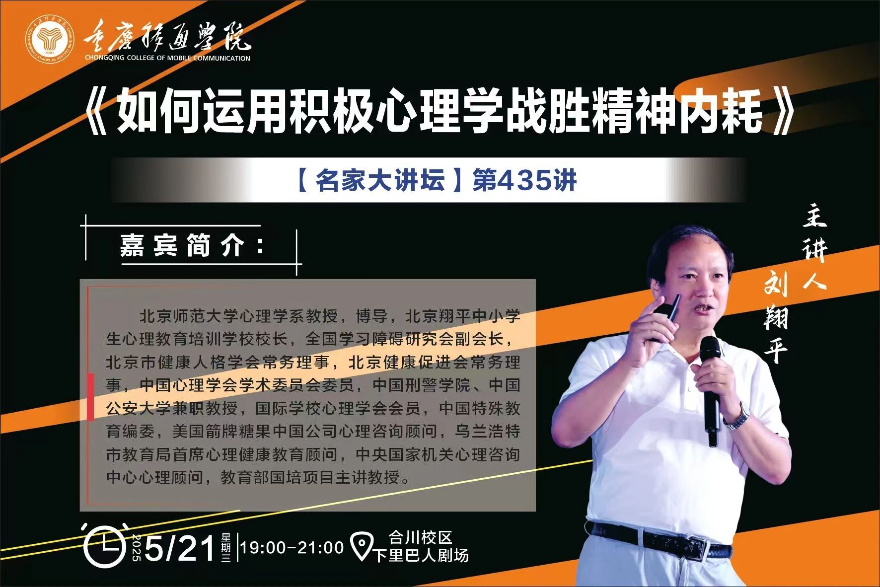 【讲座预告(合)】名家大讲坛第435讲 | 刘翔平《如何运用积极心理学战胜精神内耗》