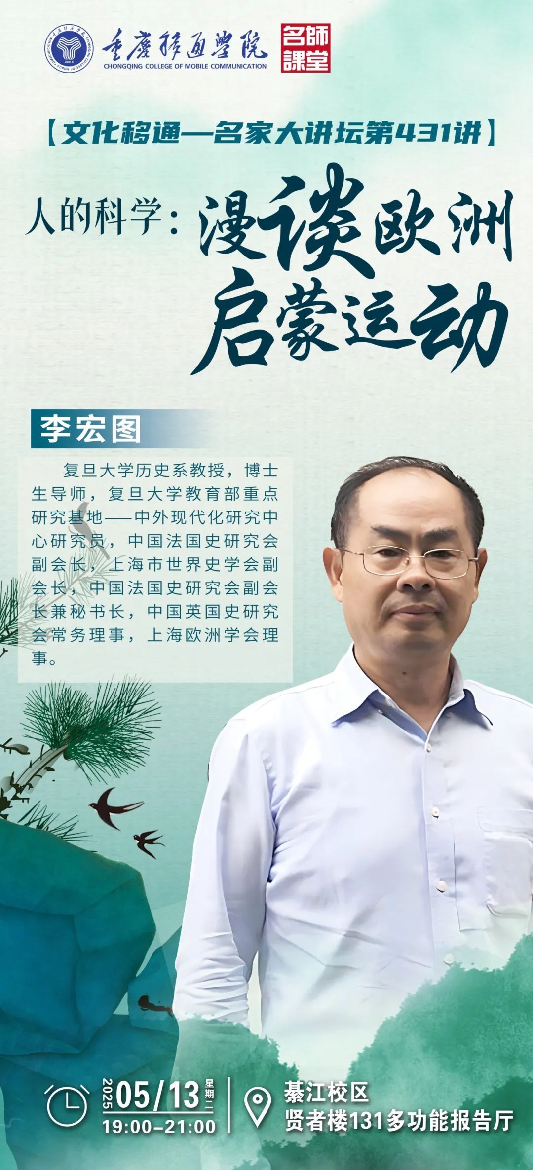 【讲座预告】名家大讲坛第431讲|李宏图《人的科学:漫谈欧洲启蒙运动》