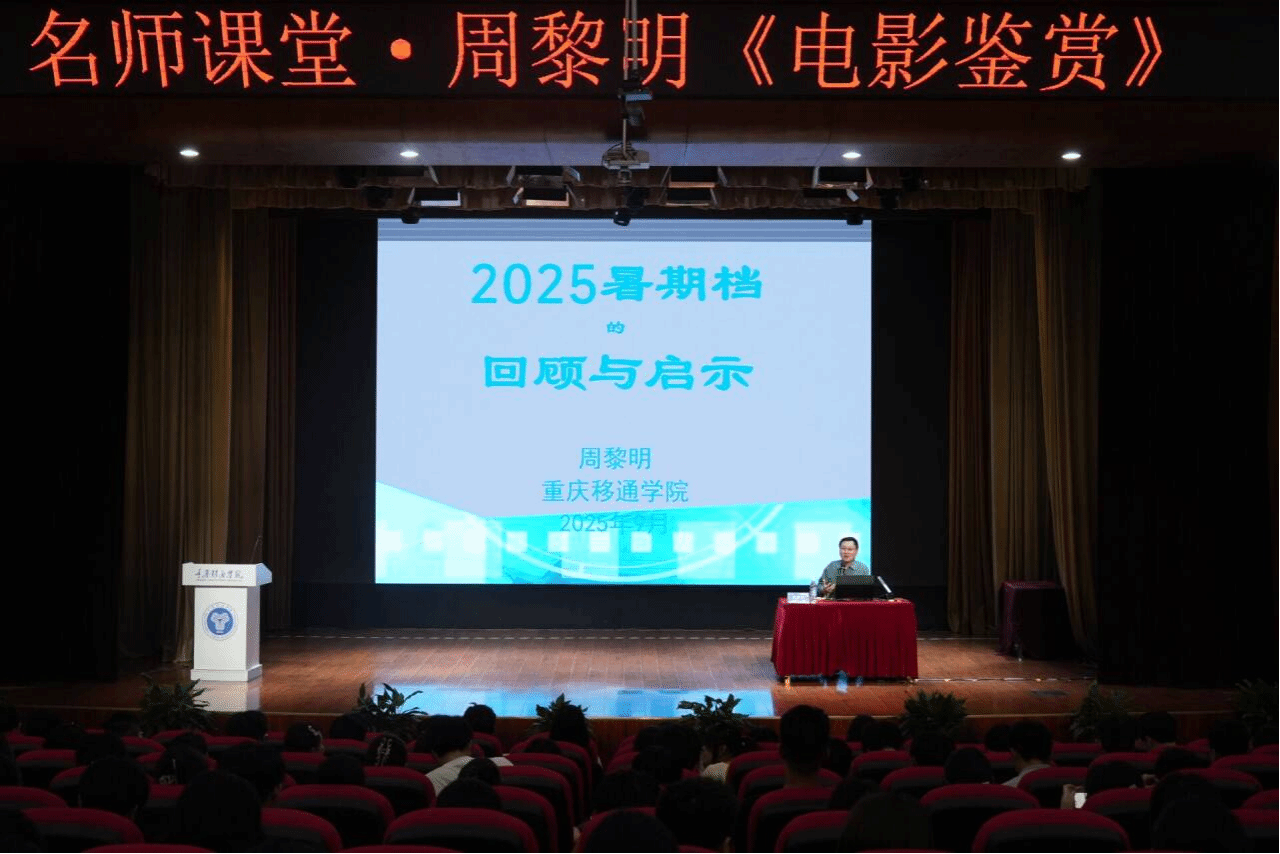当光影落幕,银幕上的故事仍能在心底泛起绵长涟漪 —— 这便是好电影的力量,也是2025年9月15日晚,移通学院下里巴人剧院里一场特殊“光影对话”的核心底色。当晚19:00,著名影评人、央视《周游电影》主讲人周黎明老师如约而至,以“2025 暑期档的艺术涟漪与未来回响”为主题,从《浪浪山小妖怪》《捕风追影》《南京照相馆》三部现象级影片切入,用专业且细腻的解读,带在场同学跳出“娱乐消费”的浅层视角,看见电影作为“时代镜子”与“艺术载体”的深层价值。