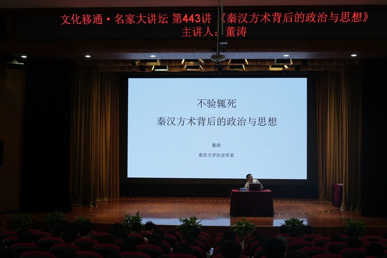2025年9月24日,一场聚焦“秦汉方术背后的政治文化与思想”的专题讲座在下里巴人剧场精彩开讲。本次讲座由重庆大学历史学系主任董涛教授主讲,以“秦始皇求仙”“汉武帝方术实践”等核心议题为切入点,为现场听众揭开了秦汉时期方术与政治、思想深度绑定的历史图景。