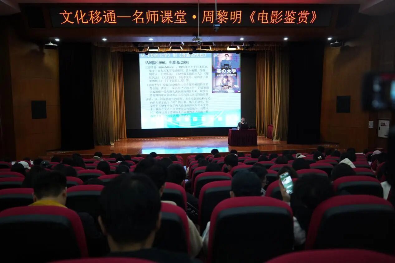 2025年11月10日的重庆移通学院下里巴人剧场,周黎明老师以“喜剧的世界”为题,执光为笔,以笑作墨,以《笑的大学》到《喜剧的忧伤》的改编作为开篇,用其专业独到的角度为在场师生勾勒出一幅超越娱乐的喜剧人文图景,剖析喜剧艺术的纵深价值。
