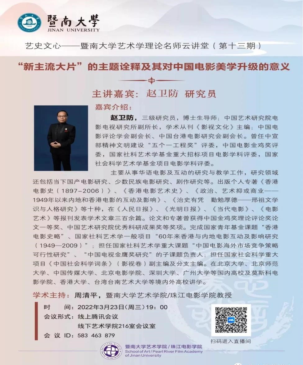 【主讲】赵卫防(三级研究员,博士生导师:中国艺术研究院电影电视研究所副所长)