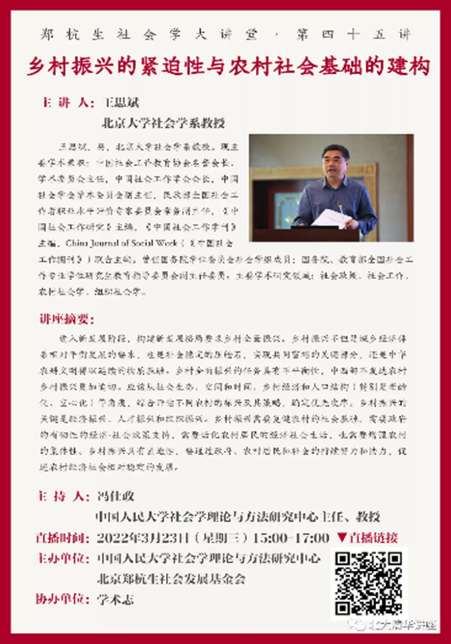 【主办】中国人民大学社会学理论与方法研究中心;北京郑杭生社会发展基金会