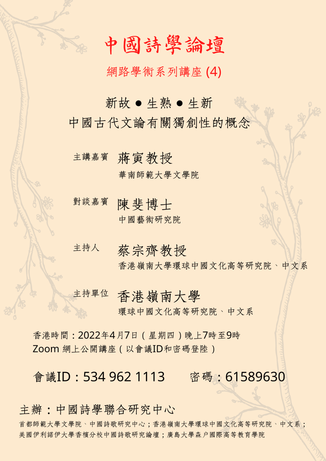 疫情防控期间,名师课堂办公室持续推出【文化移通云讲座】系列线上讲座。我们将与师生携手,共同拓宽专业视野、充实学习生活、提升学术素养、开阔视野格局。让我们在“云端”相会,在知识的海洋里共荡漾。