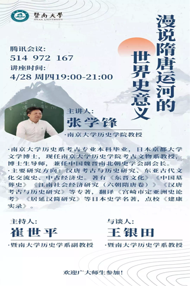 疫情防控期间,名师课堂办公室持续推出【文化移通云讲座】系列线上讲座。我们将与师生携手,共同拓宽专业视野、充实学习生活、提升学术素养、开阔视野格局。让我们在“云端”相会,在知识的海洋里共荡漾。