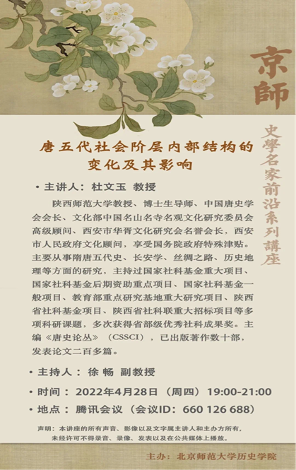 【主讲】杜文玉(陕西师范大学教授,中国唐史学会会长)