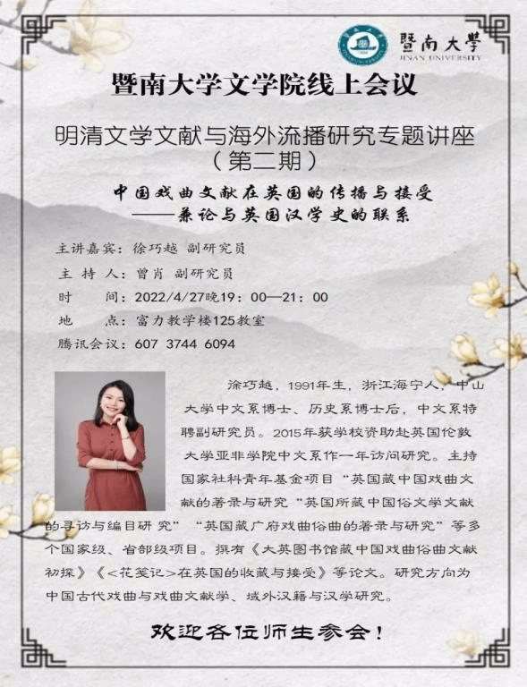 【主讲】徐巧越(暨南大学文学系副研究员)