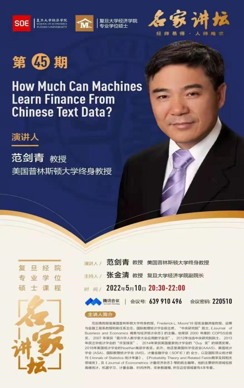 【演讲】范剑青(美国普林斯顿大学终身教授)