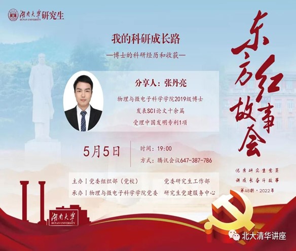 【主讲】张丹亮(物理与微电子科学学院2019级博士,发表SCI论文十余篇,受理中国发明专利1项)