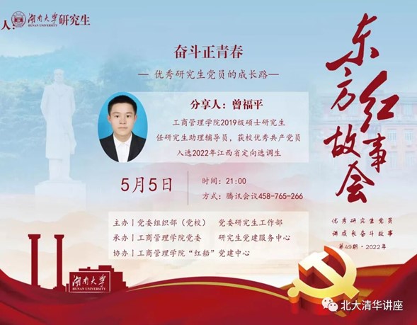 【主讲】曾福平(工商管理学院2019级硕士研究生,湖南大学助理辅导员、优秀共产党员)