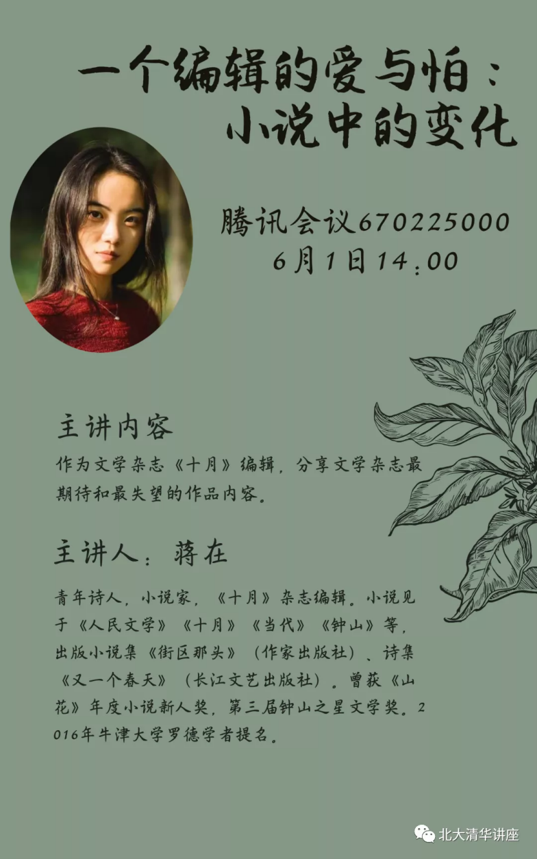 【主讲】蒋在(青年诗人,小说家,《十月》杂志编辑)