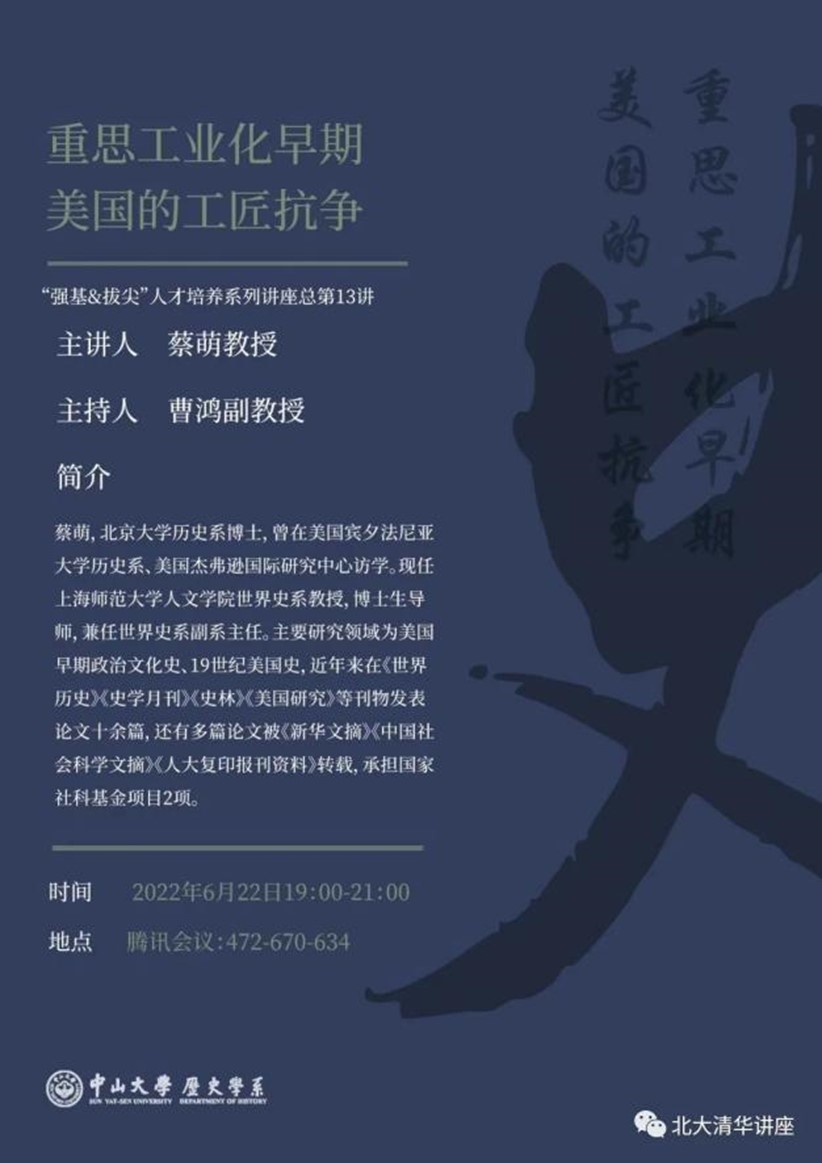 【主讲】蔡萌(上海师范大学人文学院世界史系教授,博士生导师,兼任世界史系副系主任。主要研究领域为美国早期政治文化史、19世纪美国史)