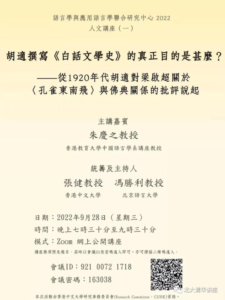 【主讲】朱庆之(香港教育大学中国语言学系讲座教授)