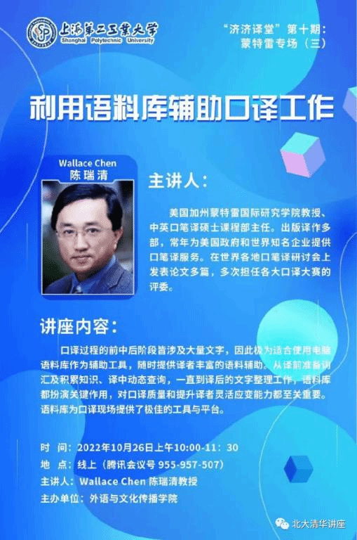 疫情防控期间,名师课堂办公室持续推出【文化移通云讲座】系列线上讲座。我们将与师生携手,共同拓宽专业视野、充实学习生活、提升学术素养、开阔视野格局。让我们在“云端”相会,在知识的海洋里共荡漾。