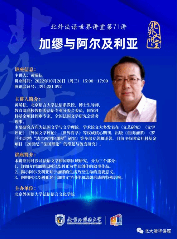 【主讲】黄晞耘(北京语言大学法语系教授,博导)