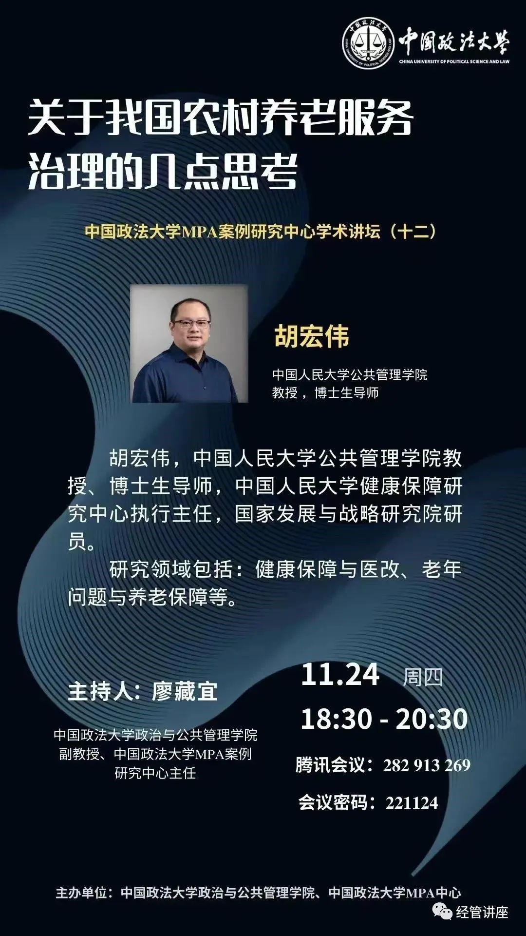 【主讲】胡宏伟(中国人民大学公共管理学院教授)