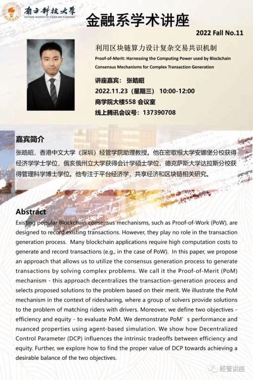 【主讲】张皓昭(香港中文大学(深圳)经管学院助理教授。)