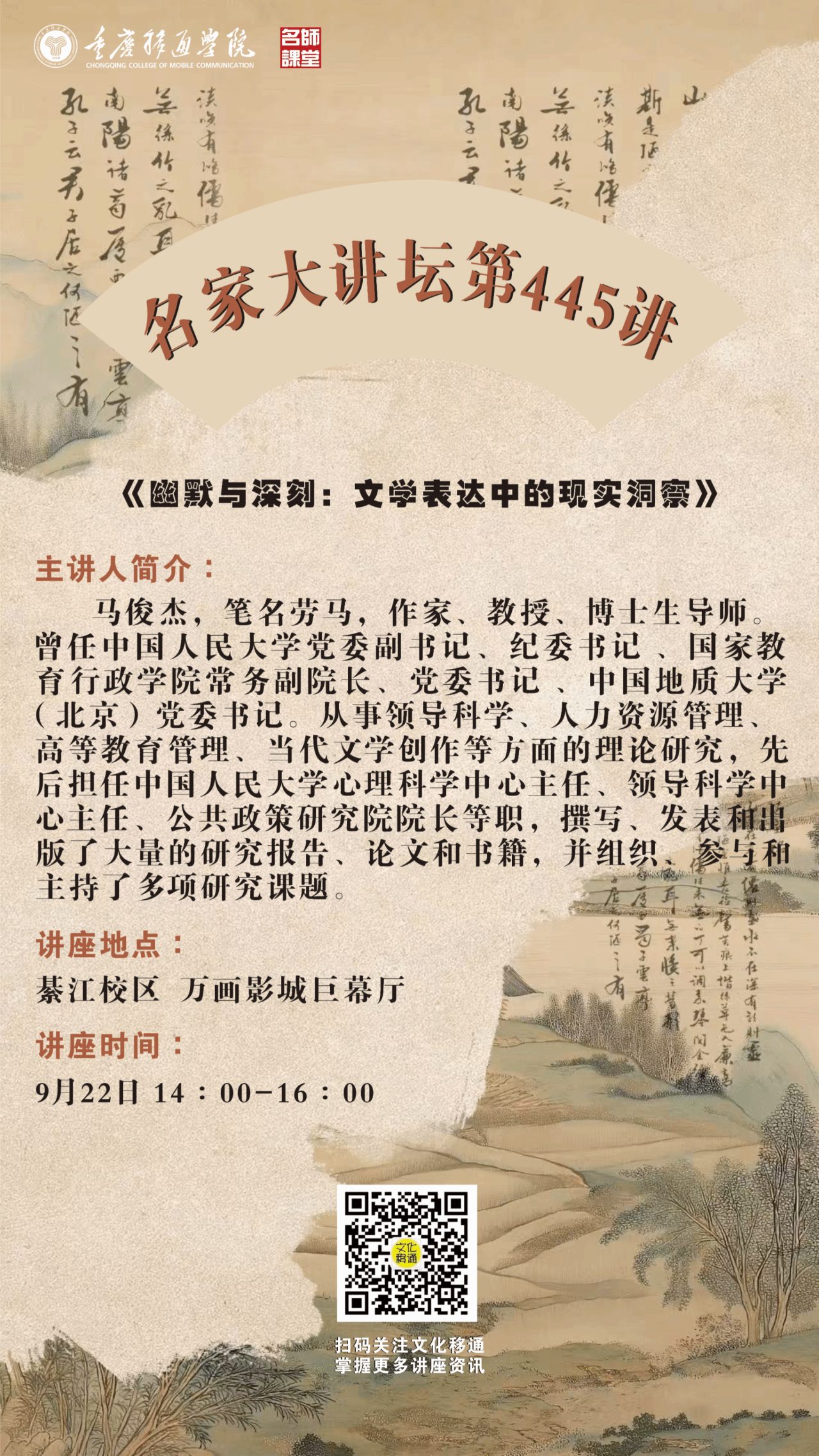 【綦江校区讲座预告】马俊杰教授 | 《幽默与深刻:文学表达中的现实洞察》